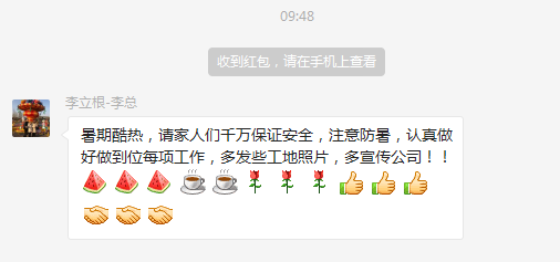 炎熱酷暑老板關心慰問員工家人們,發個紅包提高大家的熱情!